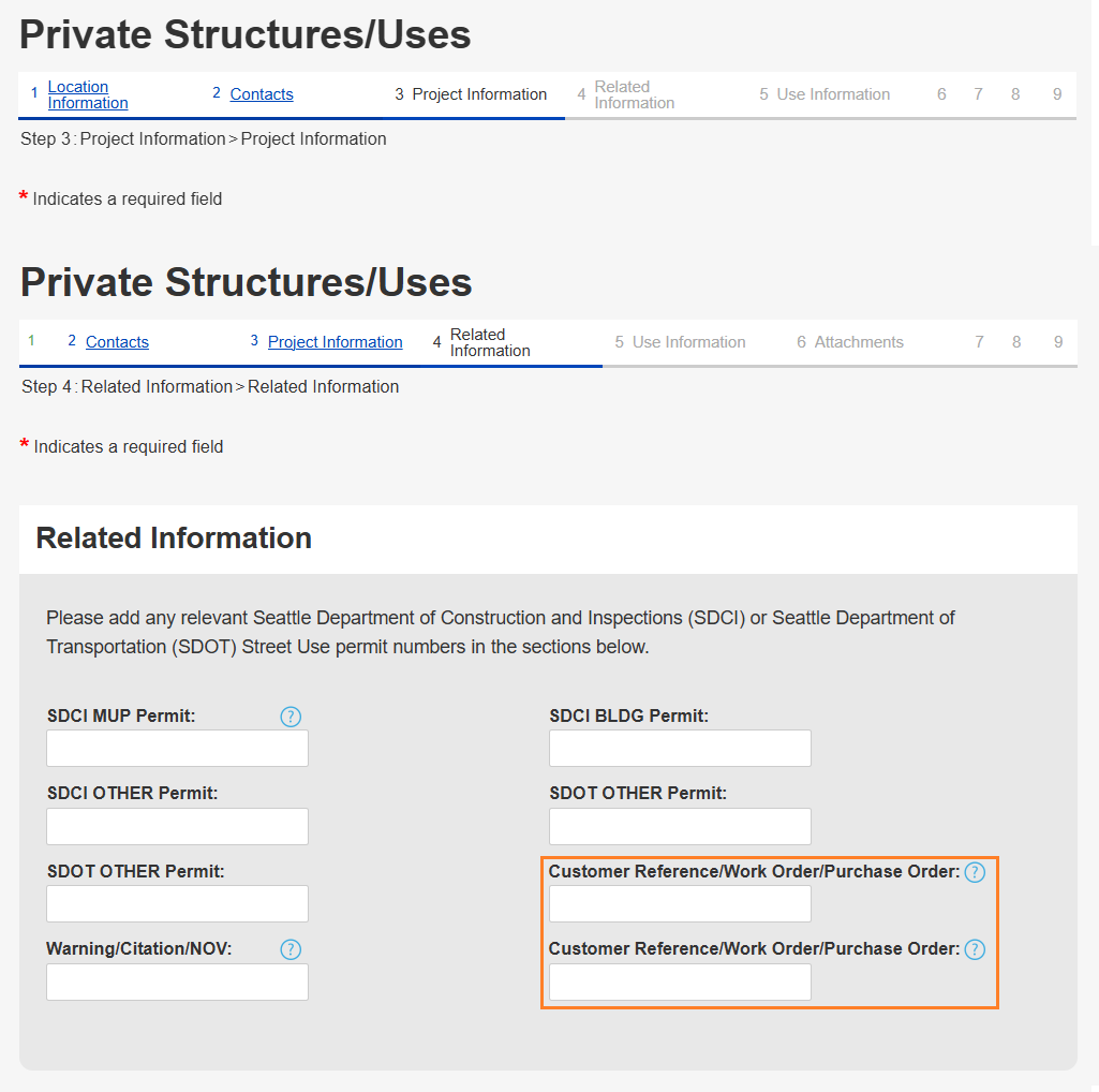 - Optionally, use this section to tell us about what else is related to your application, such as an SDCI permit, other SDOT permit, or enforcement action.