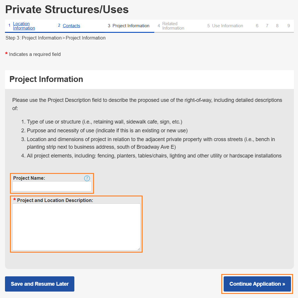 Step 7: Provide Project Use Information
