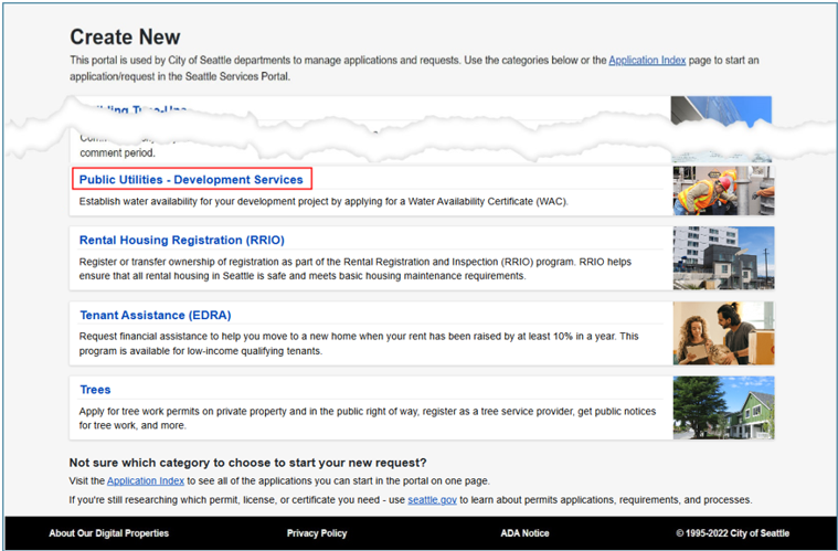 - New Water Services (optional): If you know the type and size of water services proposed for your project: