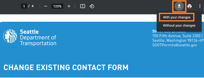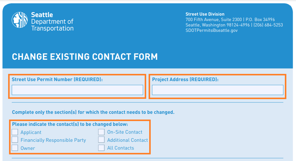 - Complete the Street Use Change Existing Contact Form